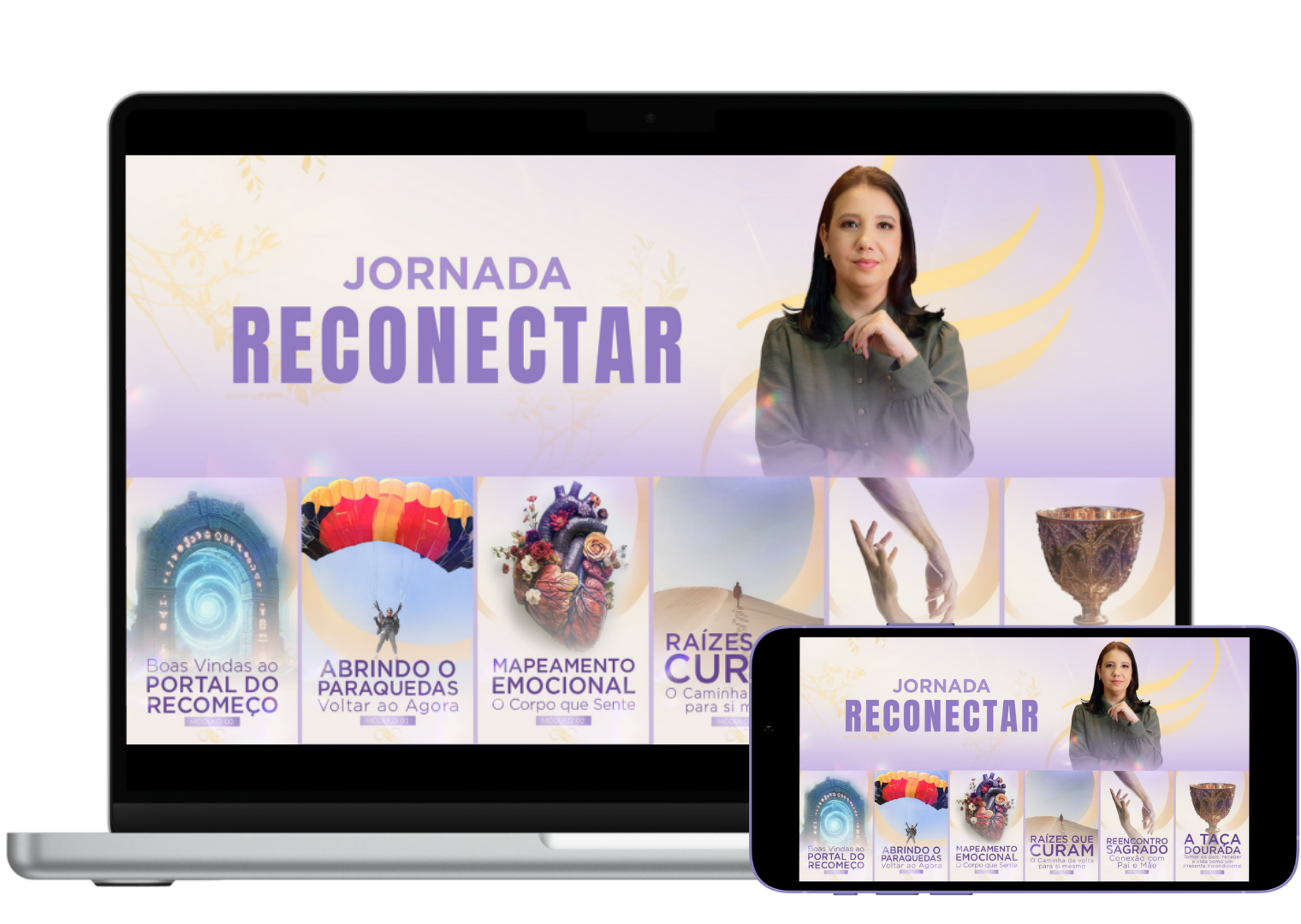 Ao entrar na Jornada Reconectar, você terá acesso vitalício a um conteúdo profundo, acolhedor e prático — criado para guiar você com segurança por um processo real de cura e autoconhecimento. Cada módulo foi desenhado para que você avance no seu tempo, com clareza, apoio e conexão com quem você realmente é.